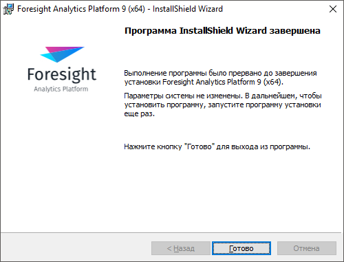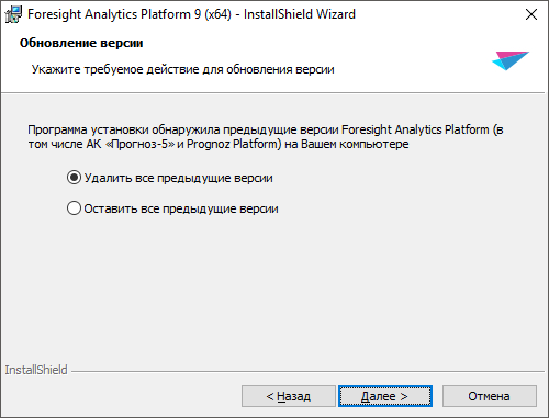 После запуска инсталлятор проверяет наличие более ранней сборки устанавливаемой версии «Форсайт. Аналитическая платформа»: