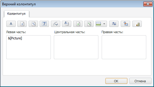 Область колонтитула условно разделена на три части, отличающиеся способом выравнивания содержимого: по левому краю, по центру или по правому краю. Каждая часть имеет свои собственные параметры.