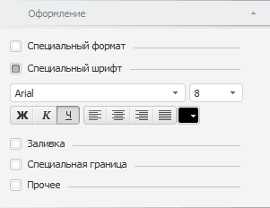 Для изменения настроек шрифта установите флажок «Специальный шрифт». Будут доступны настройки шрифта для выделенного элемента таблицы: