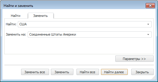 Для открытия диалога «Найти и заменить»