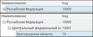 Пользователю предоставляется возможность скрывать/разворачивать иерархию справочника с помощью знаков: