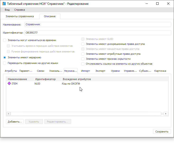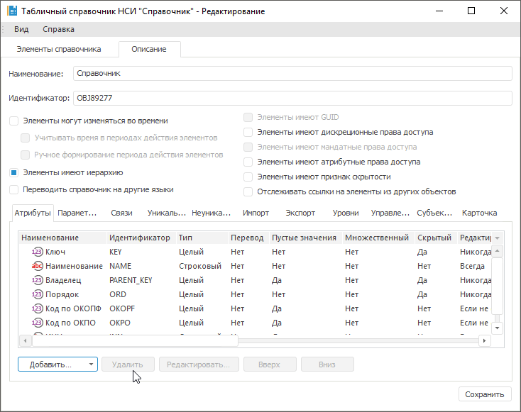 Настройка структуры справочника доступна в настольном приложении при открытии справочника на редактирование на вкладке «Описание».