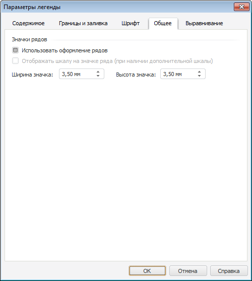 Для определения формата значков легенды перейдите на вкладку «Общее» окна «Параметры легенды».