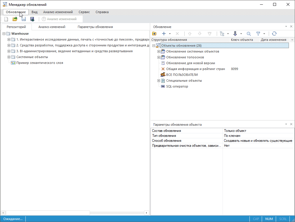 1. Проведите анализ изменений объектов репозитория и добавьте в обновление при необходимости.