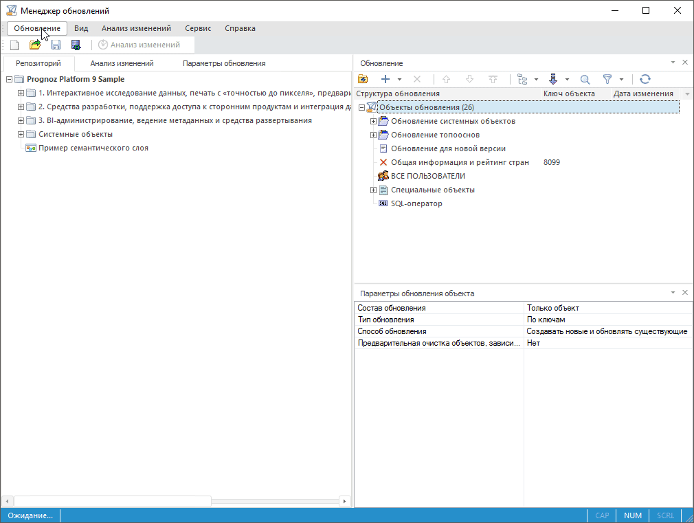 Примечание. Обновление версий объектов рекомендуется производить только для клонированных репозиториев.