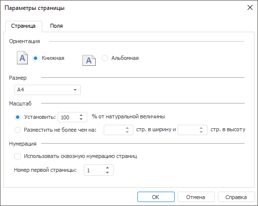 Для настройки параметров страницы выполните команду «Протокол доступа > Параметры страницы» в главном меню.