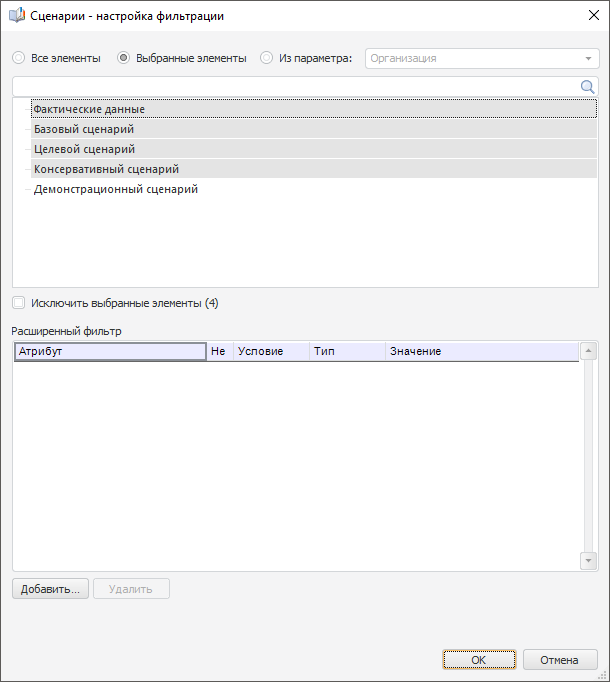 Для выбора элементов измерения, по которым будет рассчитываться блок, используйте диалог «Настройка фильтрации»: