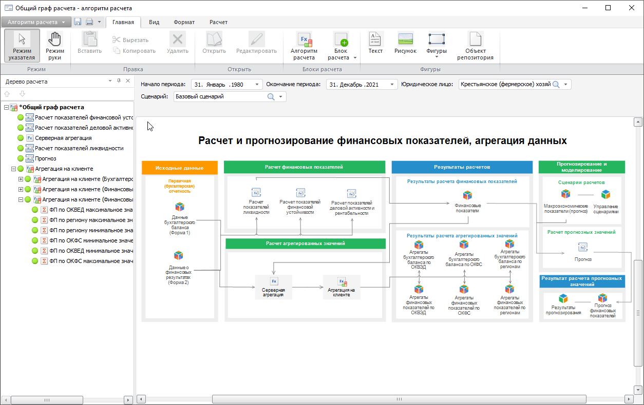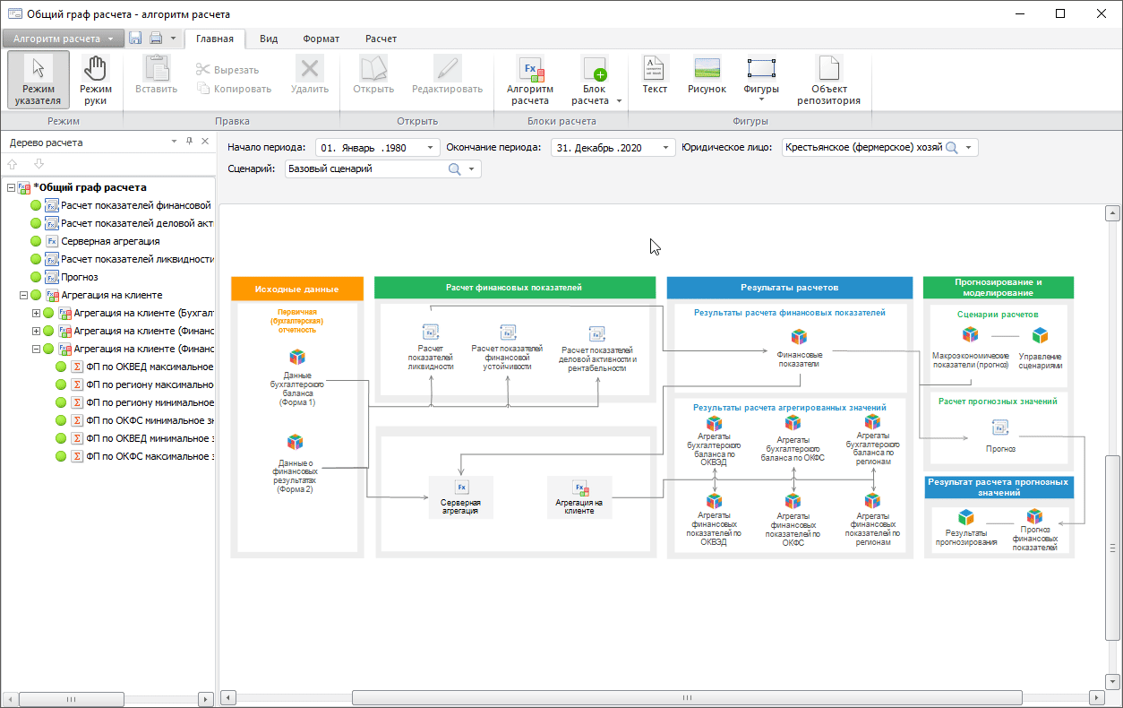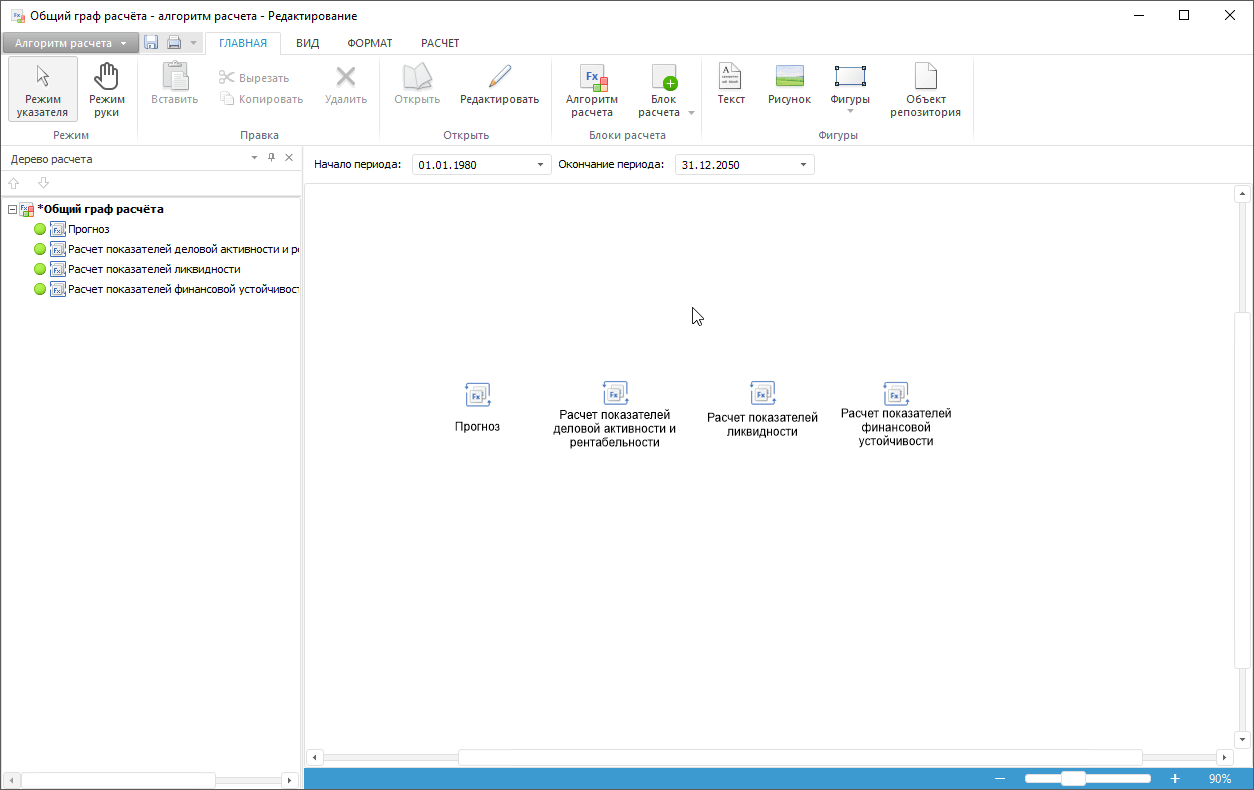 Построение алгоритма расчёта выполняется в настольном приложении.
