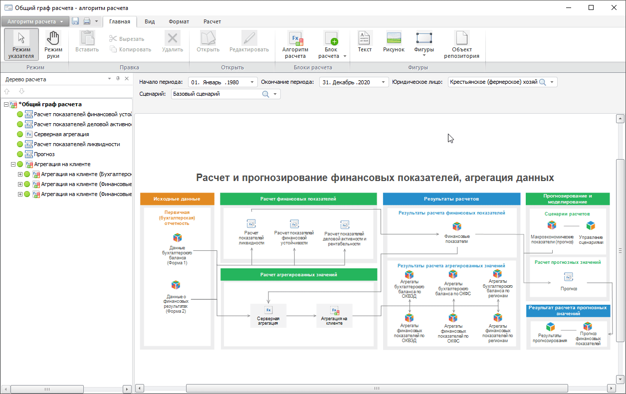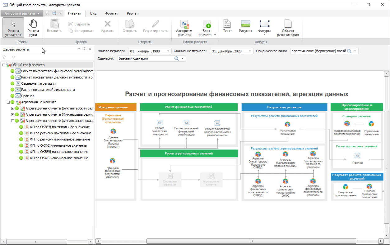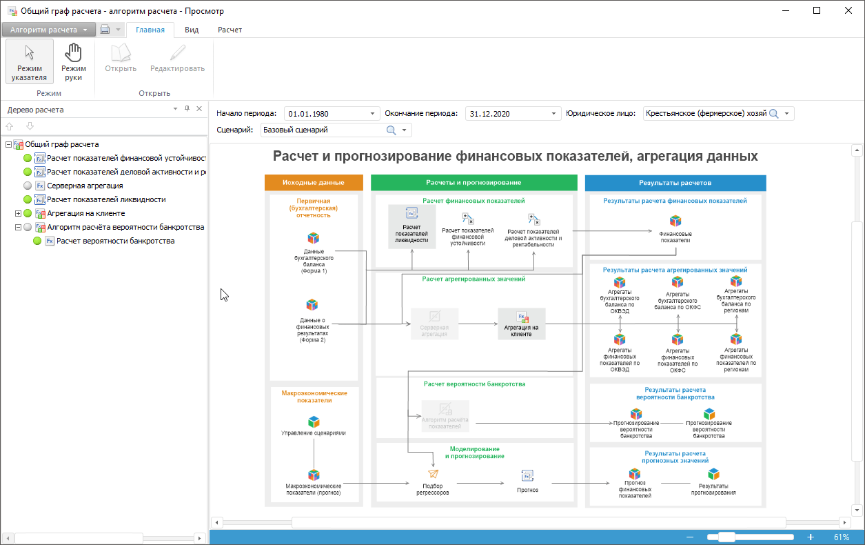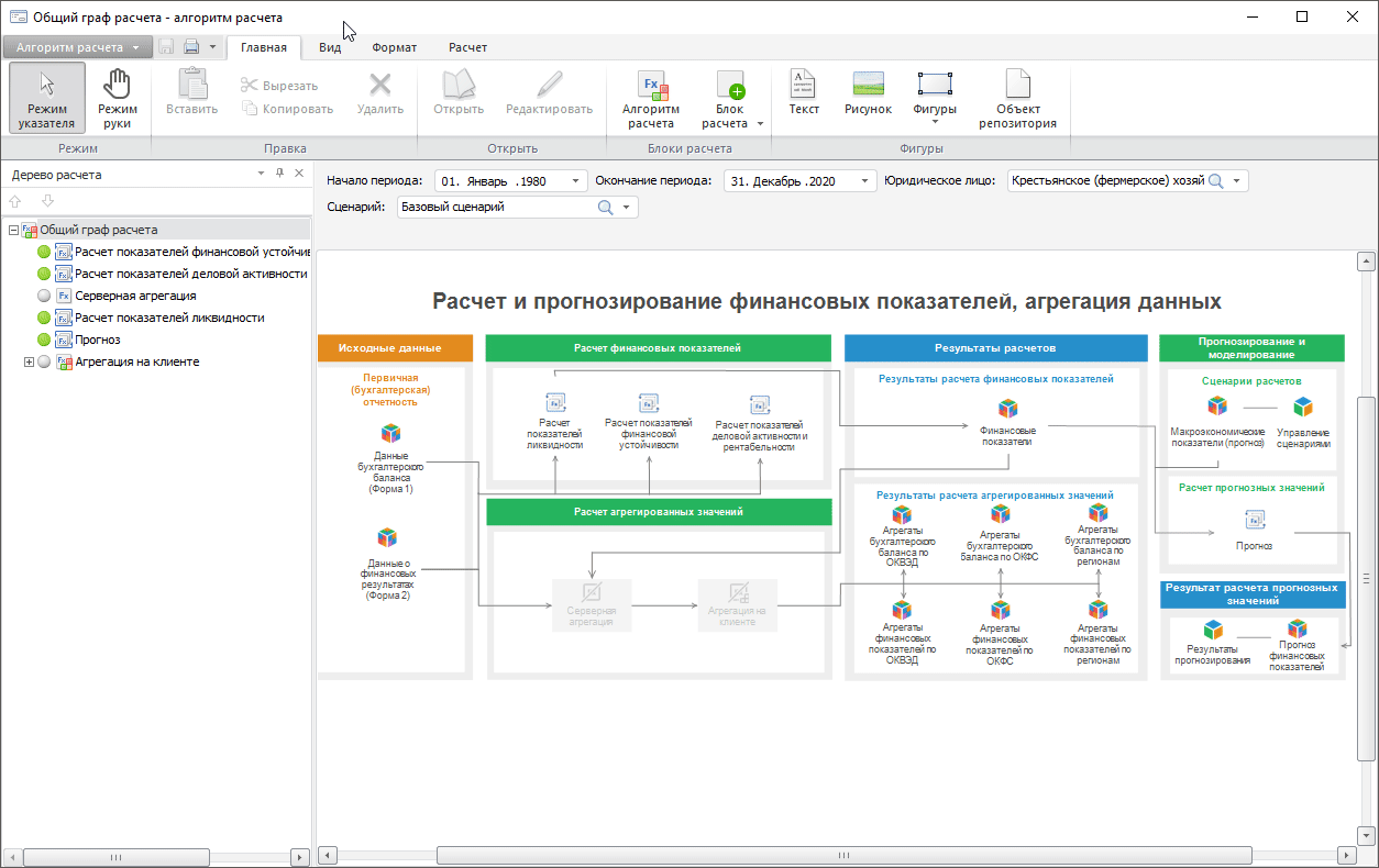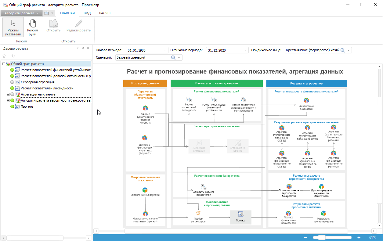Работа с готовым алгоритмом расчёта выполняется в настольном приложении и в веб-приложении.