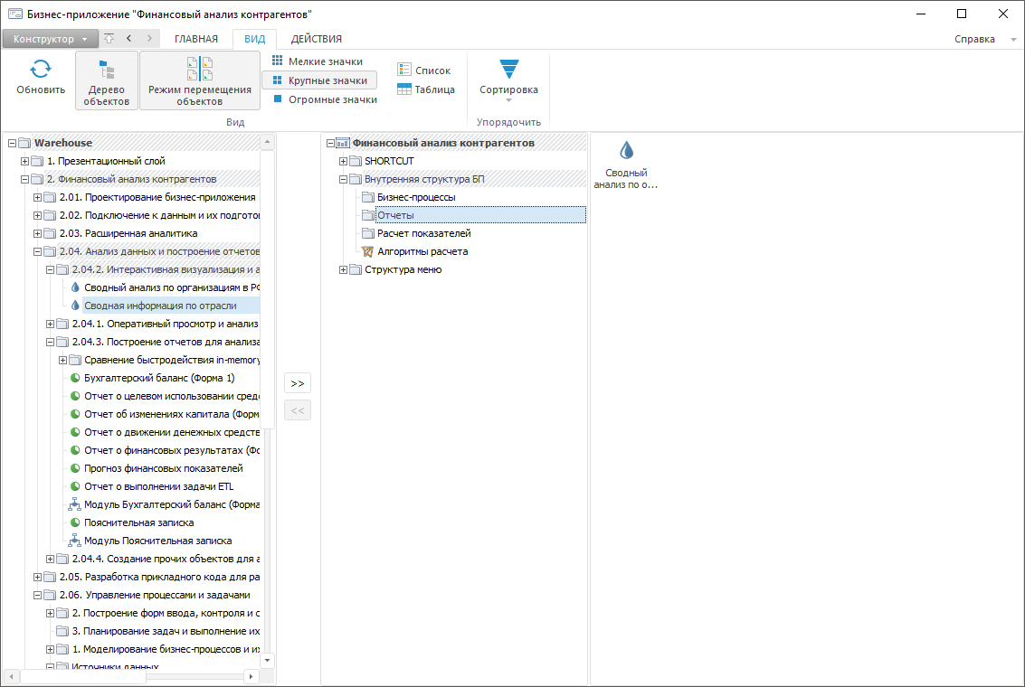 Для добавления объектов в приложение переместите ранее созданные объекты из дерева папок репозитория в папки, относящиеся к внутренней структуре приложения: