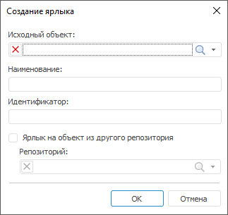 Ярлык на объект из другого репозитория. При установке данного флажка в поле «Репозиторий» выберите объект «Связь с репозиторием», который позволит получить доступ из текущего репозитория к объекту другого репозитория. После выберите объект в поле «Исходный объект».