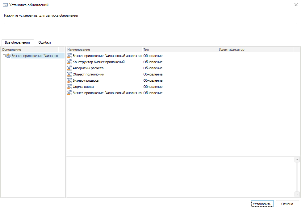 Для установки пакета обновлений приложения используется диалоговое окно «Установка обновления».