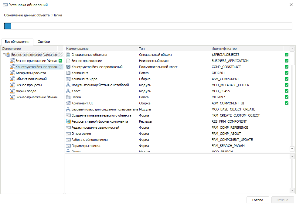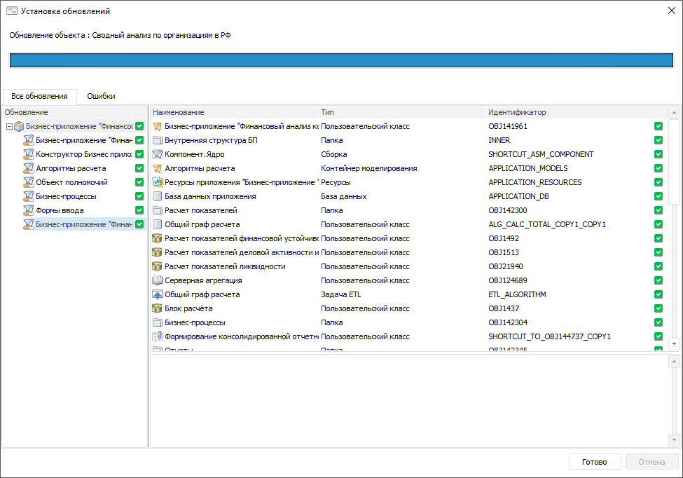 При установке пакетов обновлений обеспечивается контроль целостности бизнес-приложения с учетом версий связанных компонентов продукта «Форсайт. Аналитическая платформа».