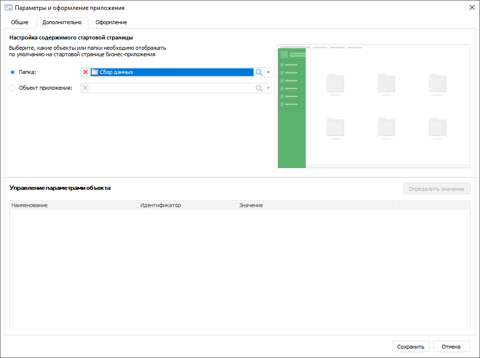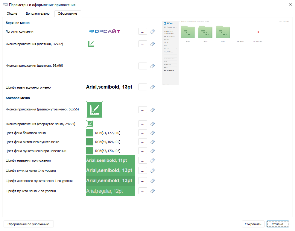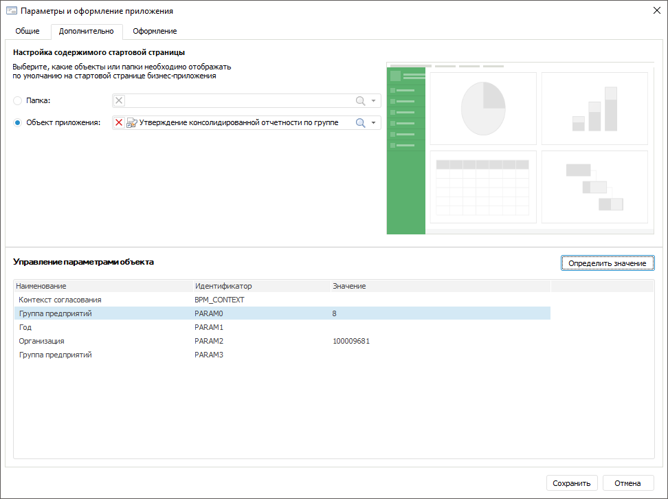 Для настройки оформления стартовой страницы веб-приложения используйте диалоговое окно «Параметры и оформление приложения».