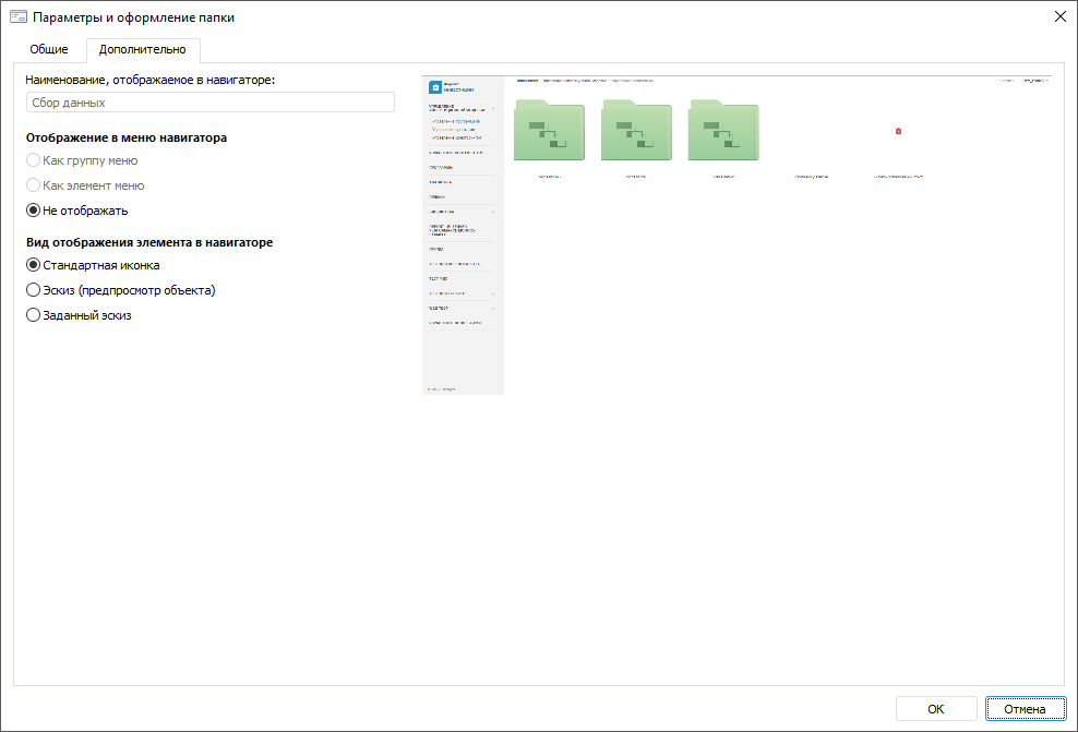 Диалоговое окно «Параметры и оформление папки» имеет вид: