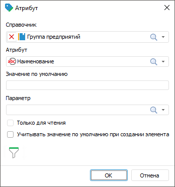 Примечание. Для создания редактора атрибута справочника в форме необходимо наличие параметра. Параметр должен быть привязан к тому же справочнику, что и настраиваемый редактор атрибута.
