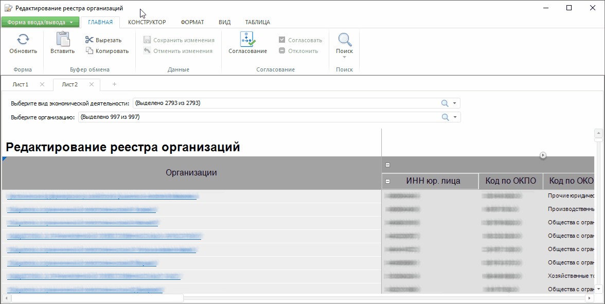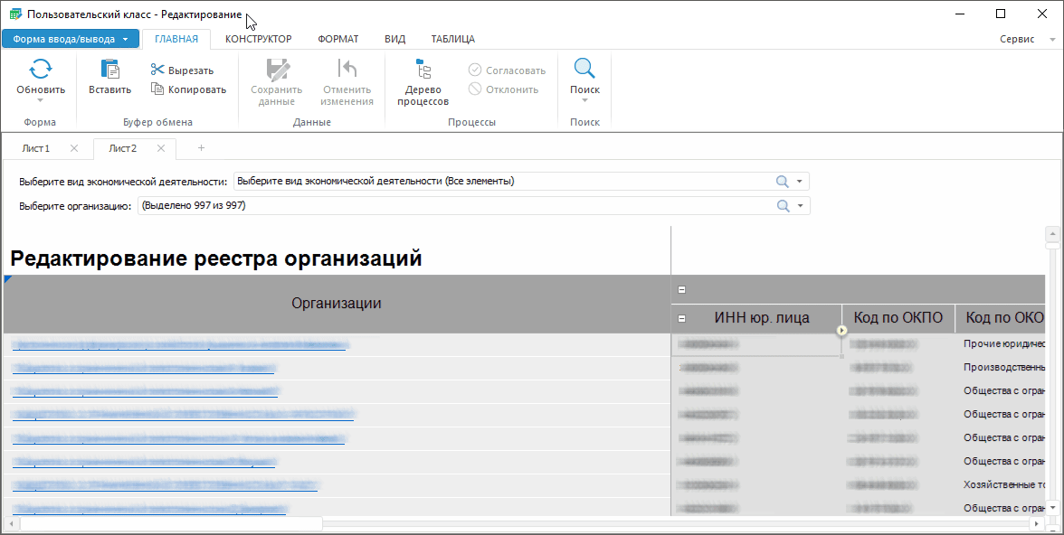 Для построения реестровой и табличной формы выполните шаги: