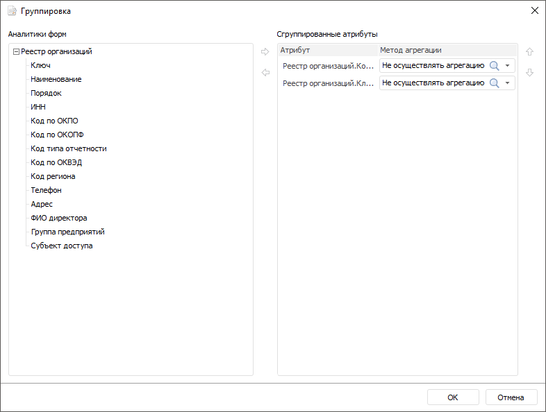 Группировка измерений боковика применяется для объединения измерений по заданному атрибуту.