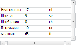 В результате выполнения примера были уменьшены размеры таблицы, для ползунков на горизонтальной и вертикальной полосах прокрутки были установлены позиции, равные 50 пикселям, границы ячеек таблицы были скрыты: