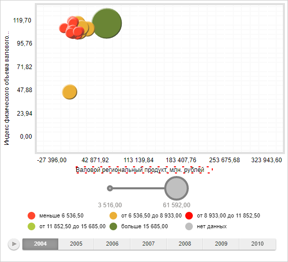 Для выполнения примера необходимо наличие на html-странице компонента BubbleChart с наименованием «bubbleChart» (см. «Пример создания компонента BubbleChart»). В пузырьковом дереве зададим границы для заголовка оси X: