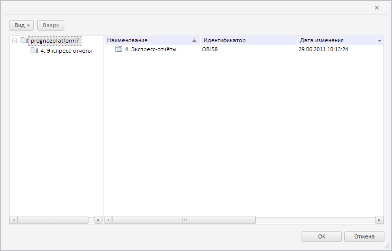 В результате выполнения примера в базовом диалоге с репозиторием были отображены только папка с ключом 107 и её родительская папка: