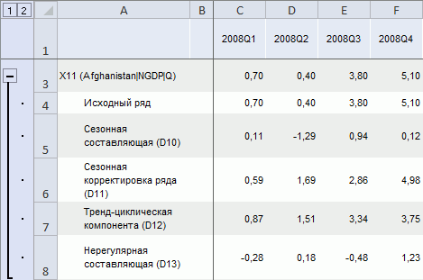 После применения метода в таблицу данных для каждого выделенного ряда будет добавлен ряд с наименованием вида «X11(<Имя_Ряда>)», содержащий результаты расчета. Например: