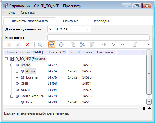 Для выполнения примера, предполагается наличие справочника НСИ с ключом «6443», содержащего атрибуты с идентификаторами «KEY», «NAME»:
