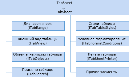 В сборке Tab таблица реализована интерфейсом ITabSheet. Все интерфейсы, предназначенные для настройки параметров таблицы, можно разделить на следующие группы: