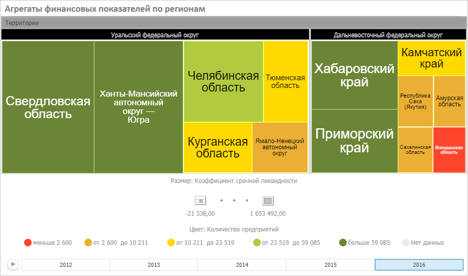 Важно. Перед работой с визуализатором убедитесь в соблюдении системных требований к клиентскому компьютеру (для настольного приложения) и к BI-серверу (для веб-приложения). В веб-приложении поддержка визуализаторов осуществляется, если BI-сервер установлен на ОС Windows 7 и выше. Внешний вид визуализатора может отличаться в зависимости от используемых графических библиотек (DirectX 9, DirectX 10 или OpenGL).