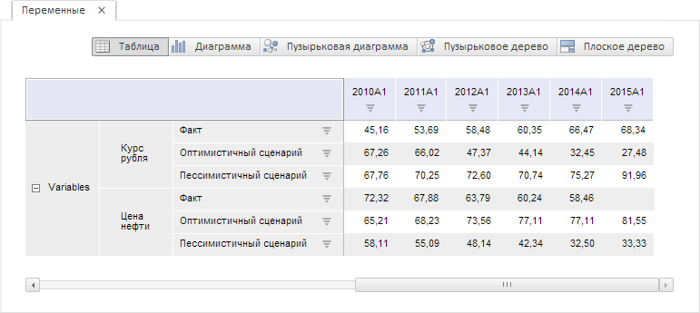 Например, «Сальдо торгового баланса. Выходные переменные» - это куб, содержащий данные выходных переменных для модели «Сальдо торгового баланса».