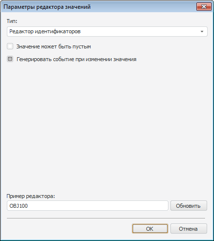 Если редактор значений используется для задания значений параметров объектов, то учитывайте следующие особенности: