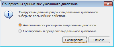 Если у выделенного диапазона есть примыкающие данные, будет выдан запрос на расширение выделенного диапазона:
