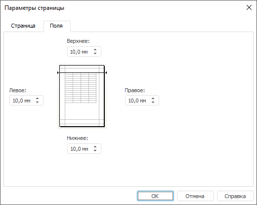 На вкладке «Поля» задайте размеры полей в миллиметрах:
