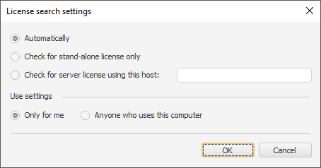 Check for Server License Using This Host. A network license is searched at the specified license server. When the radio button is selected, enter license server name to the box that is next to the radio button.