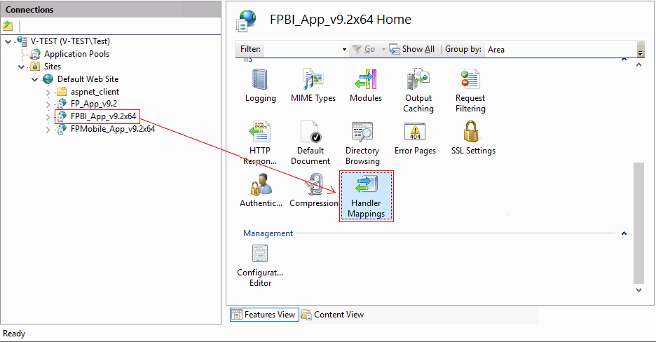 For the fpBI_App_v9.2x64 virtual directory, double-click the Handler Mappings icon: