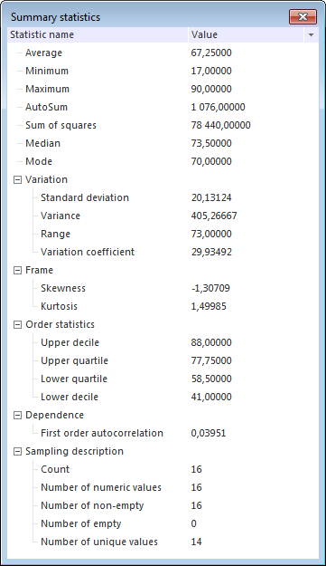 Statistics for the selected range will be displayed in the Summary Statistics dialog box: