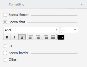 To change font settings, select the Special Font checkbox. Font settings for the selected table element will be available: