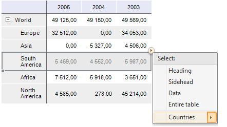Working with Data Table Dimensions | Selecting Table Elements