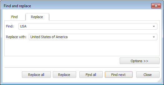 Click the Replace button for consequent replacing of data in the table cells, or the Replace All button to replace all found values.
