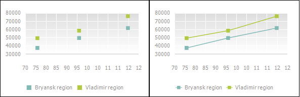Example of scatter chart (points and points with connecting lines):
