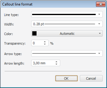 To set up format of the line connecting a series with a data label, use the Callout Line Format dialog box: