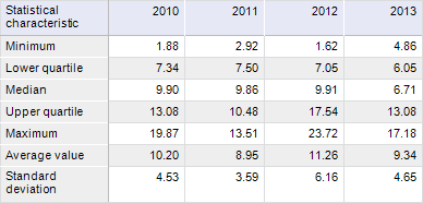 Consider an example of the chart displaying summary statistics of data set calculated automatically. Source data for the Sales Result of Machines, mil. rub. chart: