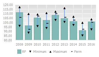 To show the example of the histogram with fluctuation intervals, use the Real Average Monthly Salary of Employees, in % to the Previous Year source data: