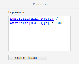 To set up calculation parameters, use the Parameters side panel tab. The tab contains the formula, by which a series is calculated.
