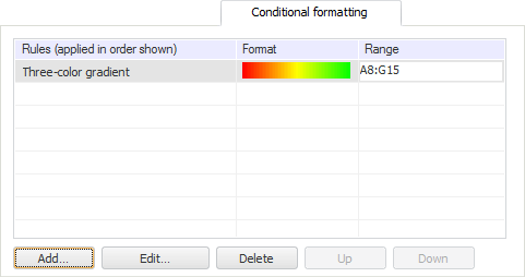 The Conditional Formatting tab is used to set up advanced cell formatting dependent on the specified condition.