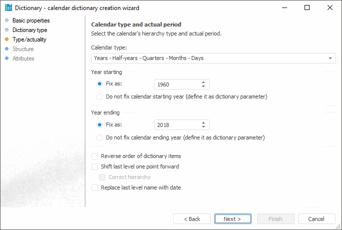 A common dictionary wizard opens after executing one of the operations. Common wizard pages are described in the Working with Wizards page. On the Object Type page select the required dictionary type:
