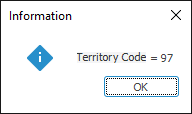 WinApplication.InformationBox("Territory code = " + (TerrId As Integer).ToString);