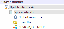 After special objects are added, the Update Structure area shows a folder containing special objects: