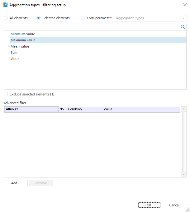 To select dimension elements, by which a block should be calculated, use the Set Up Filtering dialog box: