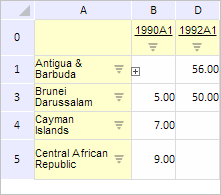 To execute the example, the HTML page must contain the ExpressBox component named expressBox (see Example of Creating the ExpressBox Component) and with the loaded table in the express report workspace. Before executing this example the express report table looks as it is shown in the page with description of the GridView class.